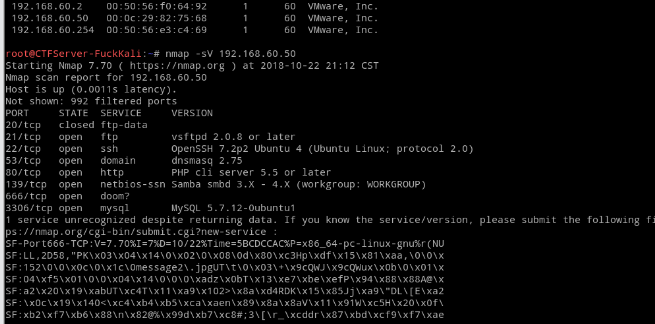 v 靶机环境:Stapler.zip中包含虚拟机导入文件,请使用virtual-box加载启动。环境中有CVE-2017-7494相应的漏洞。(网卡模式设置为NAT模式或Bridge【桥接】模式--和攻击环境设置一样的模式即可)