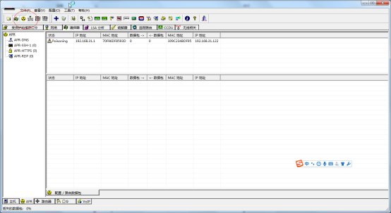 4、点击工具栏第三个图标(start ARP)就可以ARP欺骗了