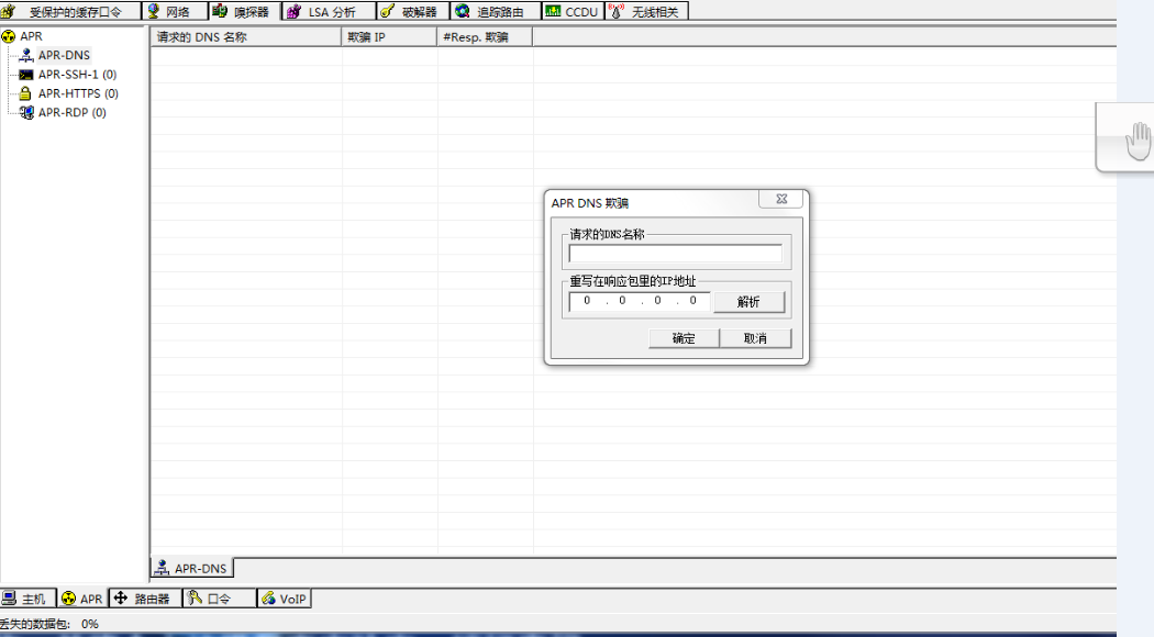 (1) 双击启动Abel&cain软件,点击sniffer选项卡。