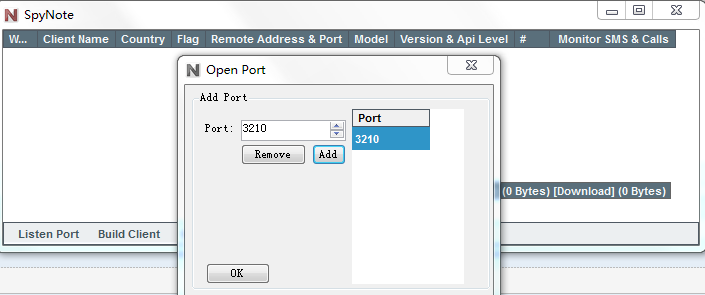点击Listen Port,在弹出的对话框中输入端口号,并点击Add按钮,最后点击OK,成功监听本地端口.使用3210端口