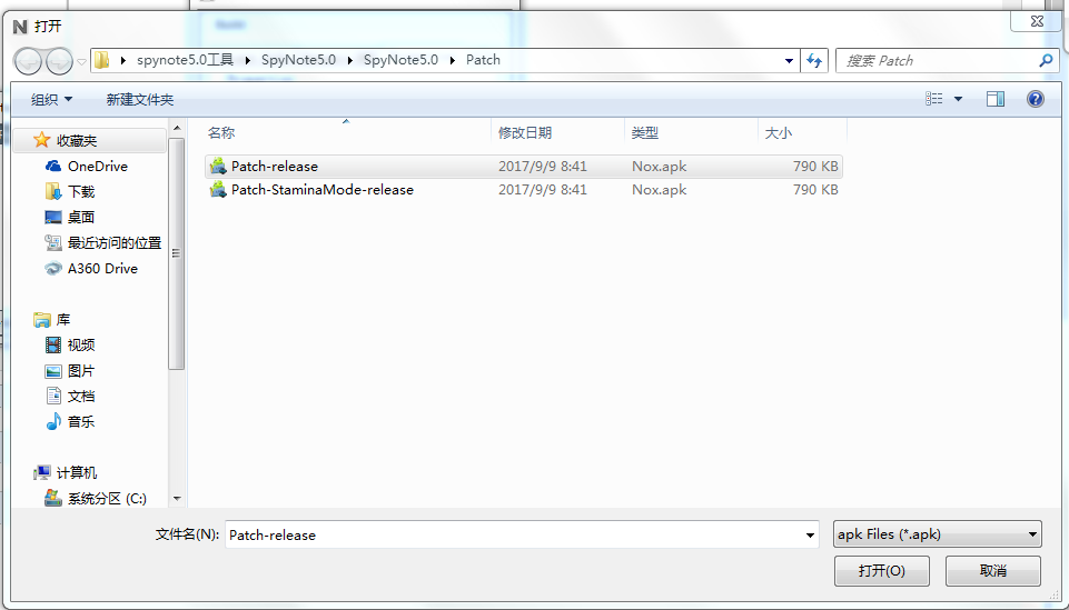 (4)最后点击Build按钮,在选择框中选择和spynote同处在一个文件夹中Patch-release.apk。