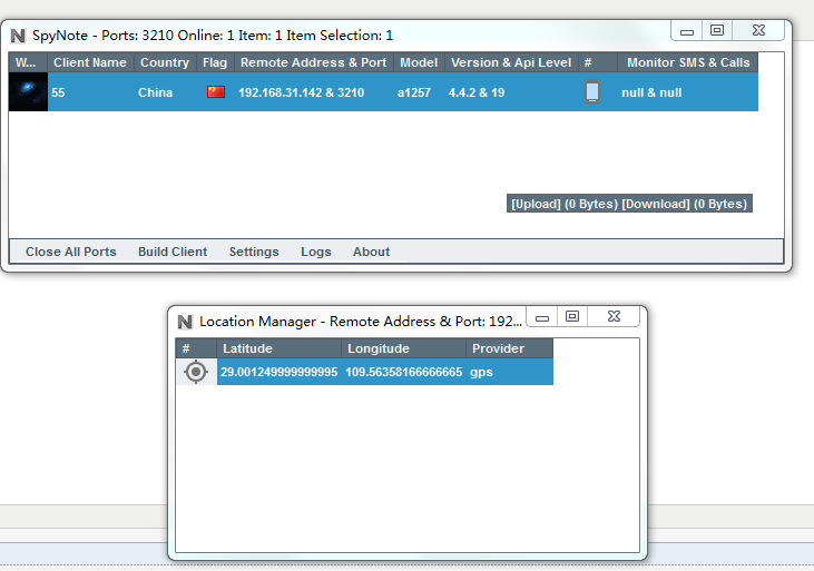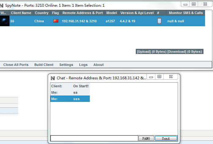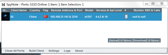 (2)配置回连IP和端口,IP地址填写运行spynote的机器IP,端口填写监听的端口号,本次填写3210端口。IP为192.168.31.142
