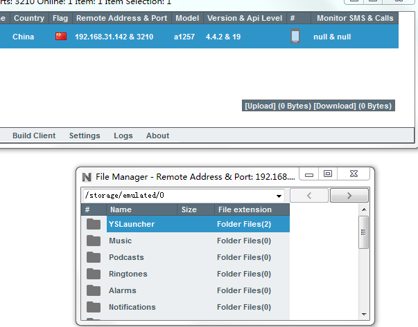 四、将木马安装在机器为192.168.31.141的Android模拟器上受害者为201521440022。
