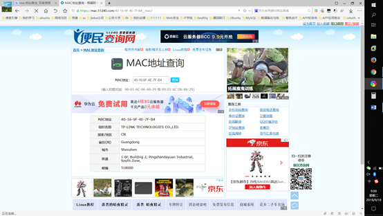 在一个案件中,获取了犯罪嫌疑人的一个MAC地址:40-16-9F-4E-7F-B4,请查询该MAC地址对应的厂商是(附截图)