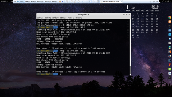 选择一个存活IP地址,扫描所开放的端口(分别用ping扫描,syn扫描尝试),并查询常用端口所对应的服务及操作系统信息。
