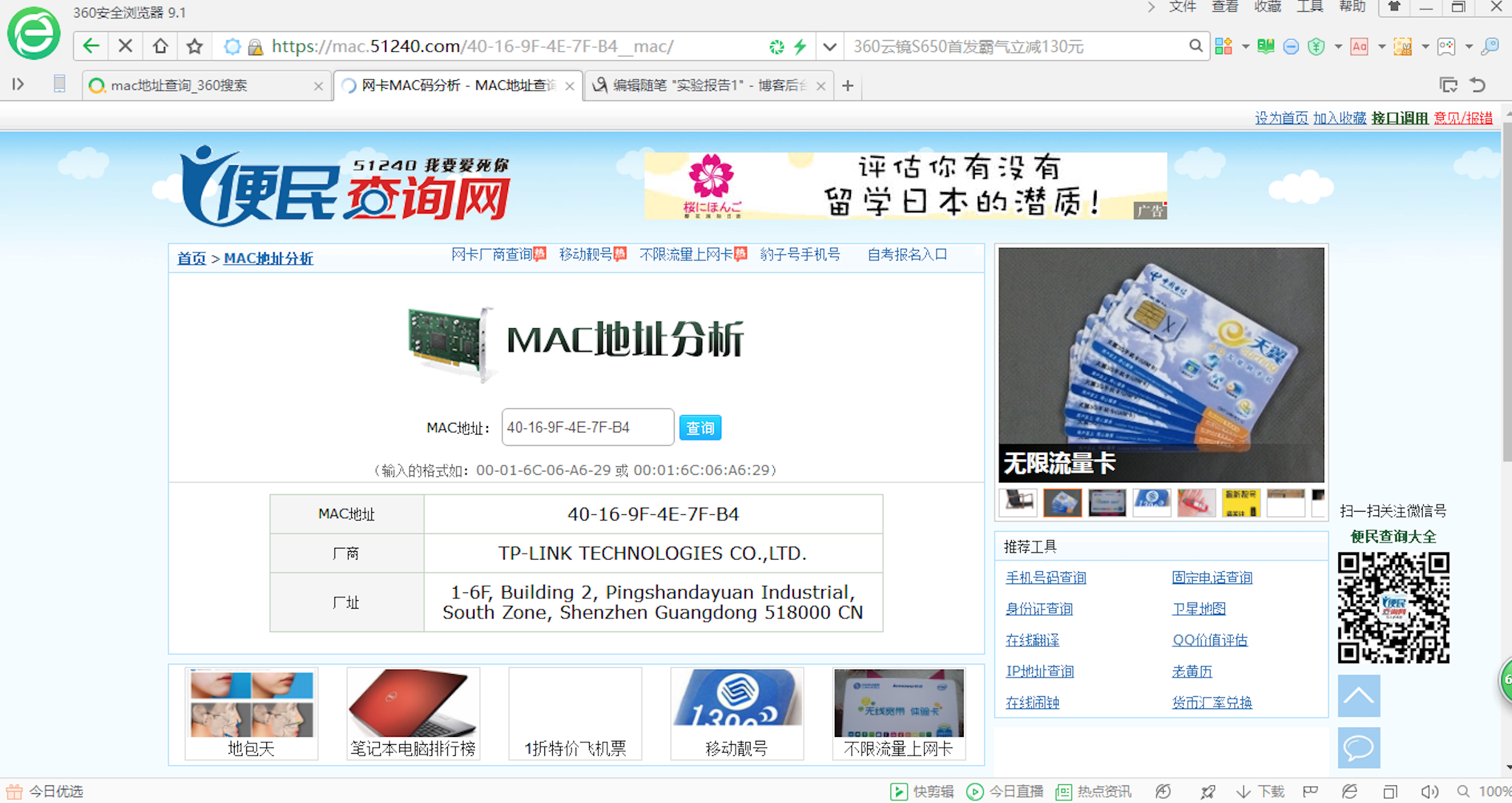在一个案件中,获取了犯罪嫌疑人的一个MAC地址:40-16-9F-4E-7F-B4,请查询该MAC地址对应的厂商是(附截图)