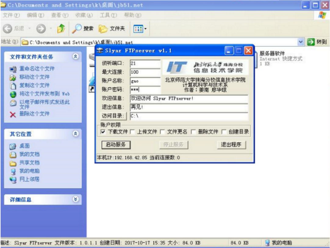 两个同学配合完成,A同学搭建FTP服务器,并新建用户,并设置登陆密码