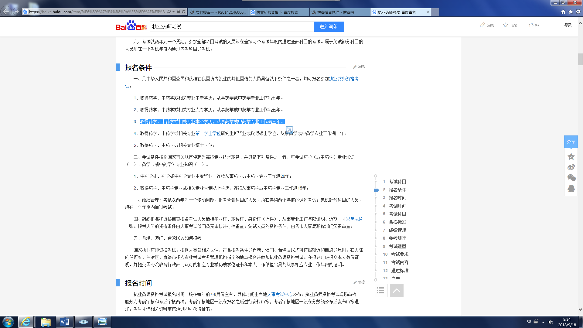 小丽是药学专业的一名本科生,现已从事药学专业的工作,目前她想考取一个资格证,但是报名条件中要求其工作满三年。那么,小丽想考取的是什么证。(请回答并附截图证明。)