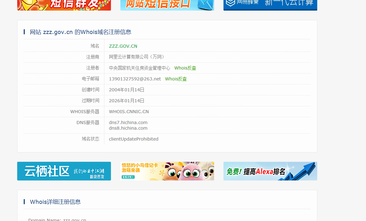 获取www.zzz.gov.cn域名注册时,注册人的邮箱是(附截图)