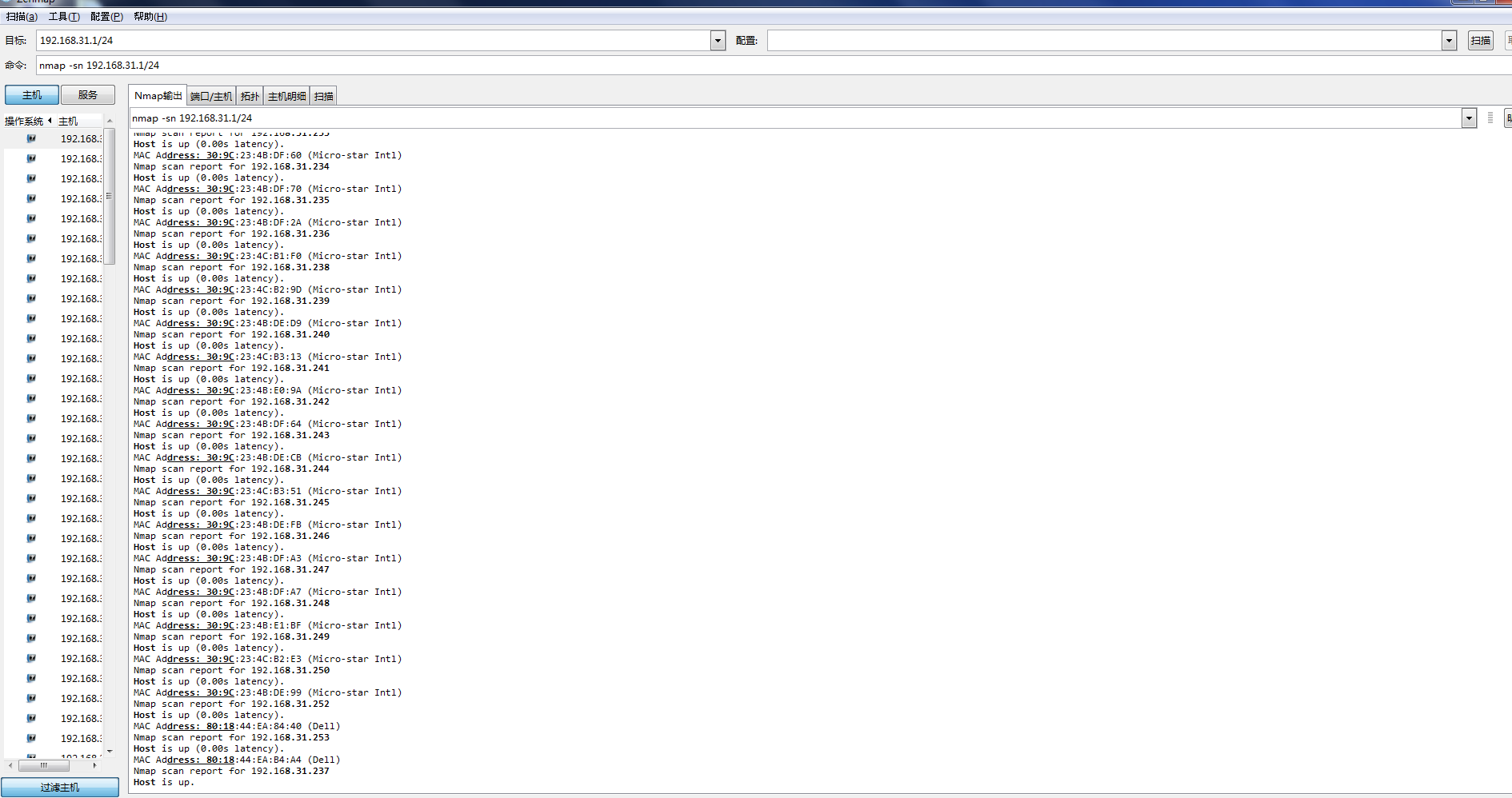 请查询本机的IP地址和子网掩码,并在局域网中扫描本网段内的所有存活主机(附搜索截图)