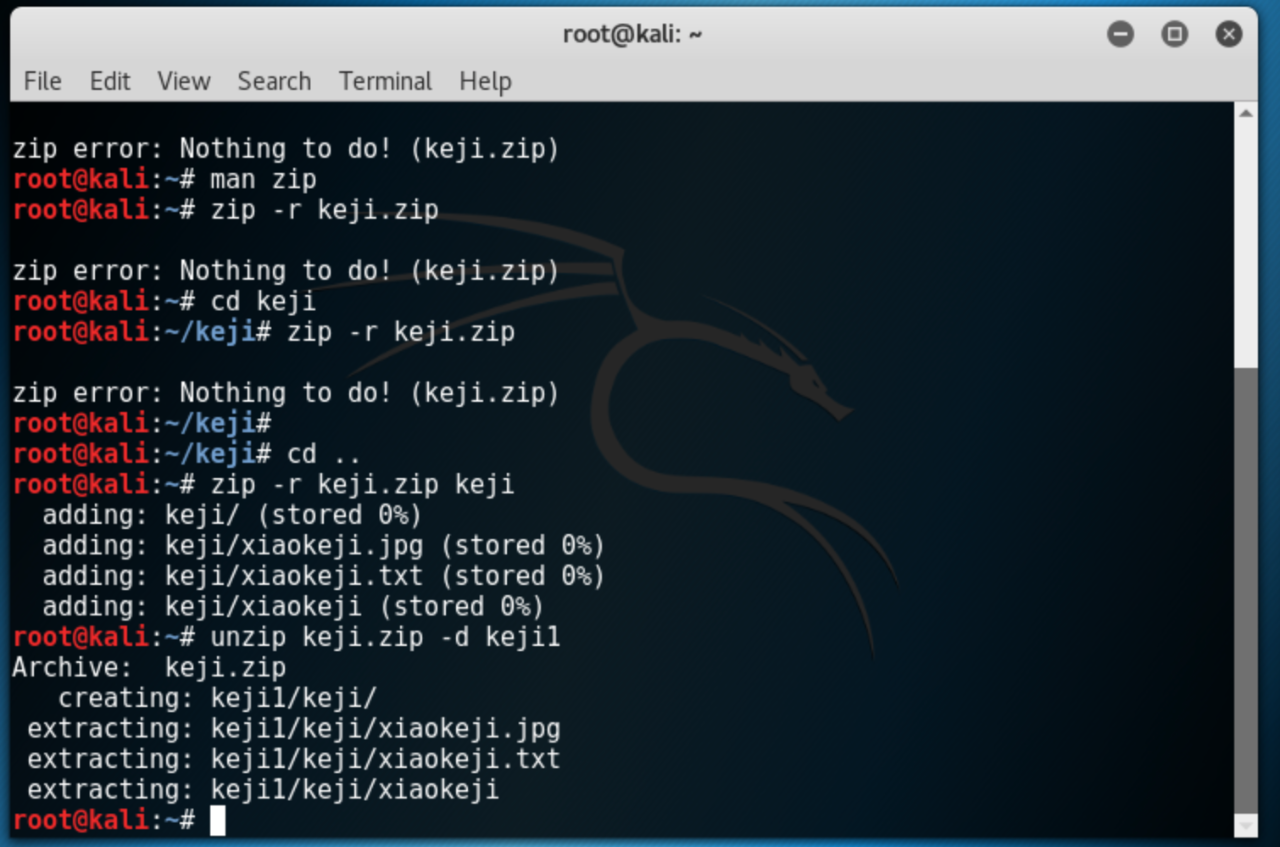 创建文件夹,文件夹中创建一些文件,将文件夹打包,最后解包到另一个文件中