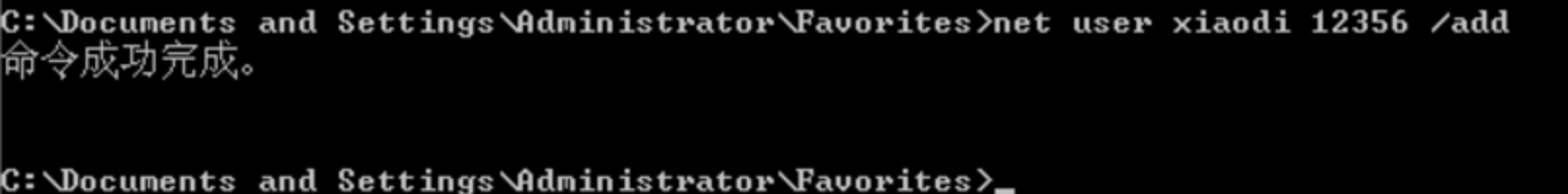 net user xiaodi 123456 /add添加用户名为xiaodi,密码为123456的用户