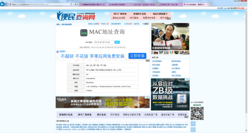 在一个案件中,获取了犯罪嫌疑人的一个MAC地址:40-16-9F-4E-7F-B4,请查询该MAC地址对应的厂商是(附截图)