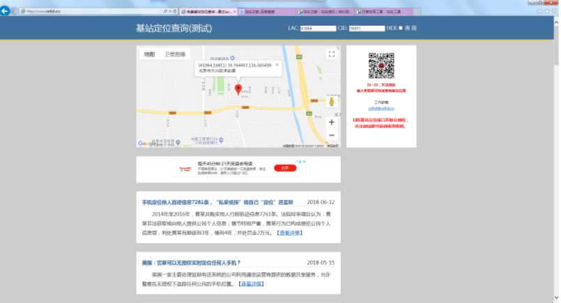 在一个案件中,获取了犯罪嫌疑人的LAC是41064,CID是16811,这个人可能在什么地方?(附截图)