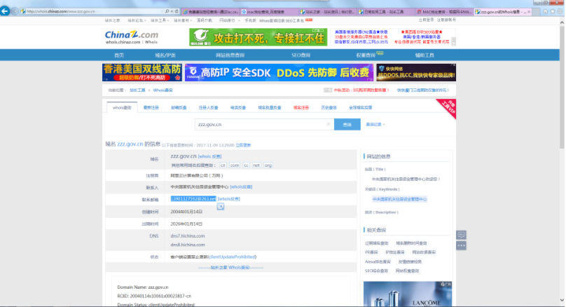 获取www.zzz.gov.cn域名注册时,注册人的邮箱是(附截图)