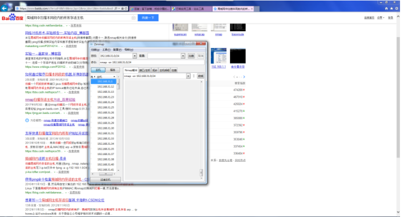 请查询本机的IP地址和子网掩码,并在局域网中扫描本网段内的所有存活主机(附搜索截图)