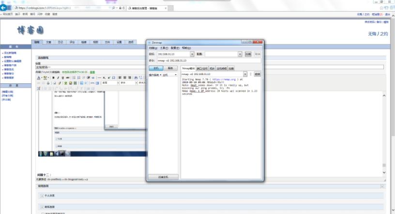 选择一个存活IP地址,扫描所开放的端口(分别用ping扫描,syn扫描尝试),并查询常用端口所对应的服务及操作系统信息。