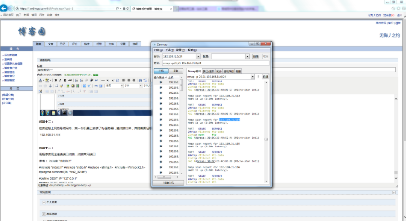 在实验楼上网的局域网内,某一台机器上安装了ftp服务器,请扫描出来,并附截图证明。