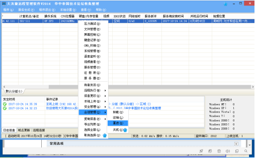 在该机器中右键,可以看到可以对该机器进行控制的功能,从中选择4个以上的项目进行实验。
