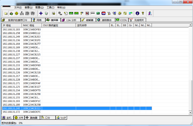 2、在192.168.31.239 (实验中的IP可能和这个不一样)号机器上运行cain,选择要嗅探的网卡