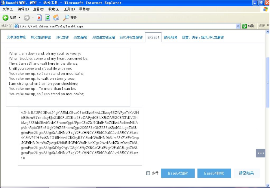 V2hlbiBJIGFtIGRvd24gYW5kLCBvaCBteSBzb3VsLCBzbyB3ZWFyeTsKV2hlbiB0cm91YmxlcyBjb21lIGFuZCBteSBoZWFydCBidXJkZW5lZCBiZTsKVGhlbiwgSSBhbSBzdGlsbCBhbmQgd2FpdCBoZXJlIGluIHRoZSBzaWxlbmNlLApVbnRpbCB5b3UgY29tZSBhbmQgc2l0IGF3aGlsZSB3aXRoIG1lLgpZb3UgcmFpc2UgbWUgdXAsIHNvIEkgY2FuIHN0YW5kIG9uIG1vdW50YWluczsKWW91IHJhaXNlIG1lIHVwLCB0byB3YWxrIG9uIHN0b3JteSBzZWFzOwpJIGFtIHN0cm9uZywgd2hlbiBJIGFtIG9uIHlvdXIgc2hvdWxkZXJzOwpZb3UgcmFpc2UgbWUgdXDigKYgVG8gbW9yZSB0aGFuIEkgY2FuIGJlLgpZb3UgcmFpc2UgbWUgdXAsIHNvIEkgY2FuIHN0YW5kIG9uIG1vdW50YWluczs=
