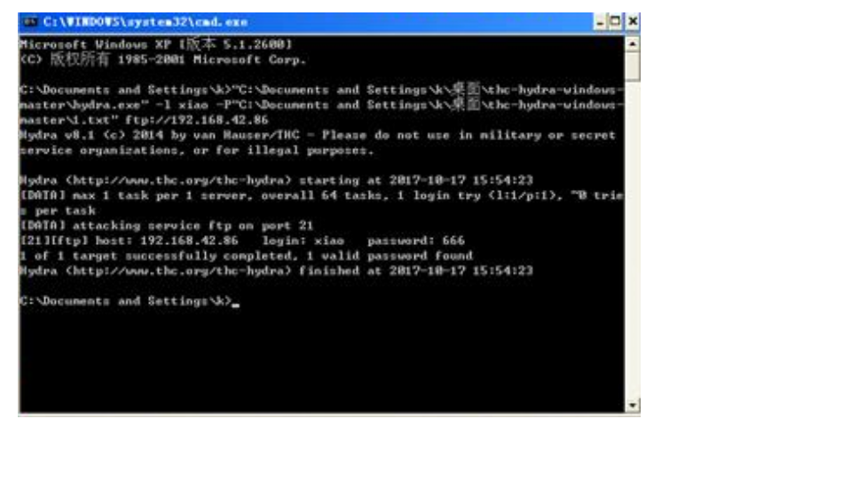 2.B同学使用hydra 对ftp用户的密码进行字典破解。hydra 中有关于该软件的使用命令语法。字典文件需要自己去生成。