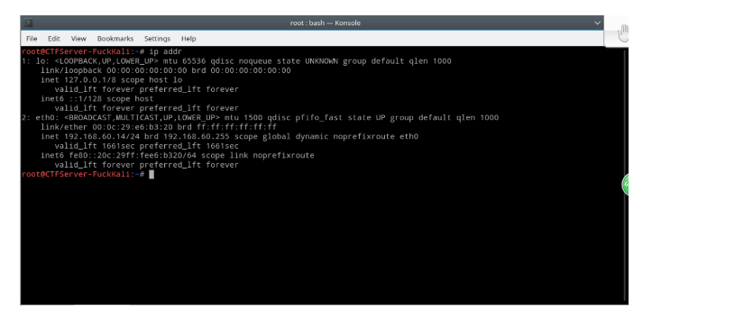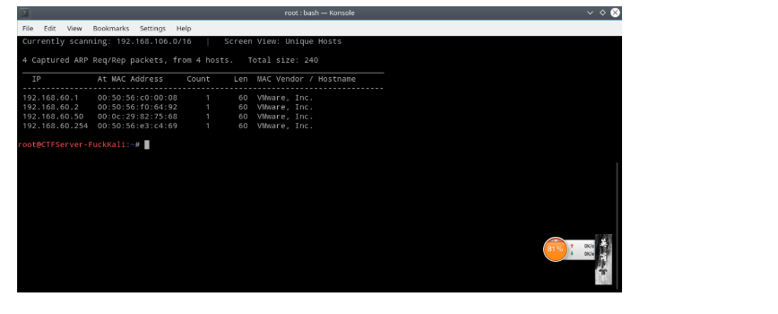 一、在攻击者机器上,使用Nmap或netdiscover工具扫描子网的机器,发现靶机的IP地址。【实验中,大家环境不同,发现的IP地址和图中不一定一致】