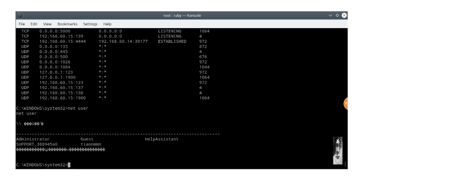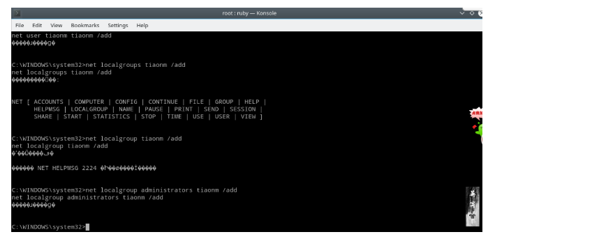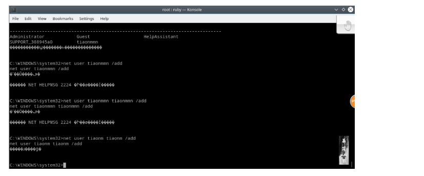 在平台中获取shell之后,继续在命令行添加账户和管理员权限。