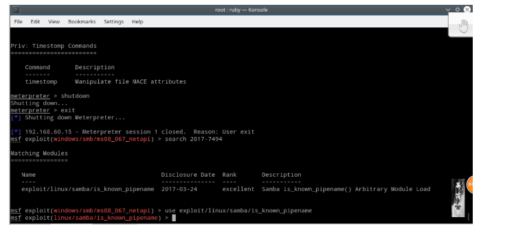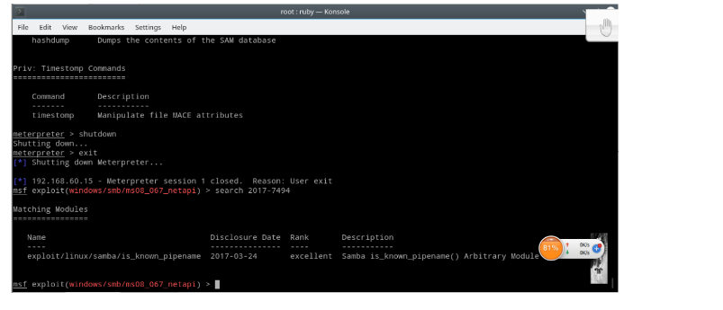 三、启动MSF搜索CVE-2017-7494相关攻击模块