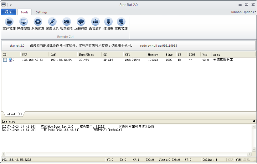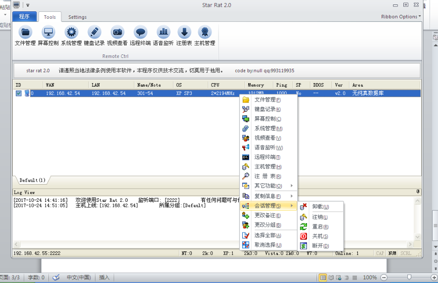攻击者的机器. (同学A) 打开V2014.exe程序或则star RAT,这两个木马功能类似。
