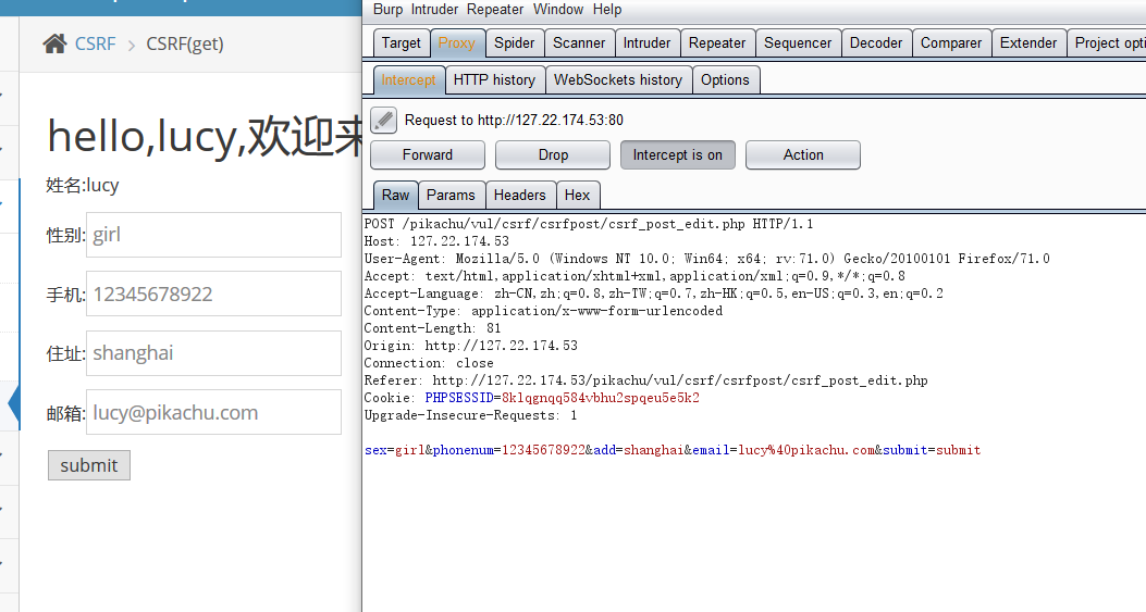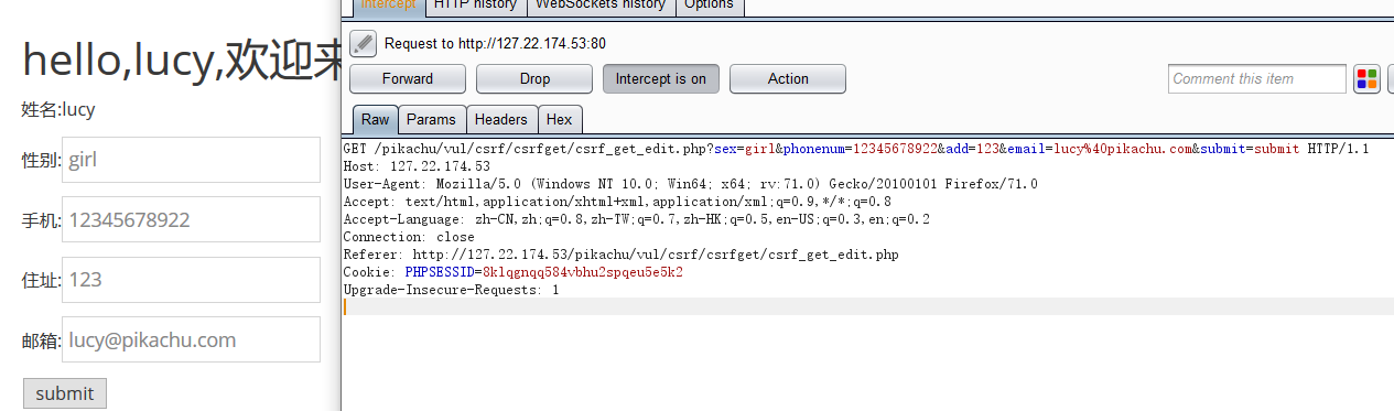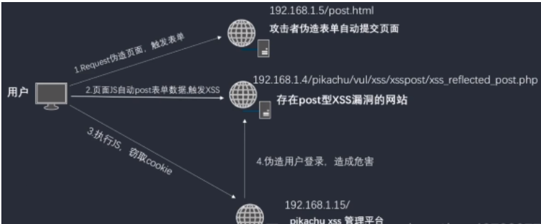 诱使被攻击者点击链接http://127.0.0.1/pikachu/pkxss/xcookie/post.html