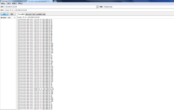 选择一个存活IP地址,扫描所开放的端口(分别用ping扫描,syn扫描尝试),并查询常用端口所对应的服务及操作系统信息。