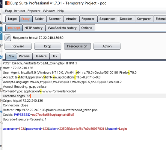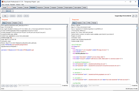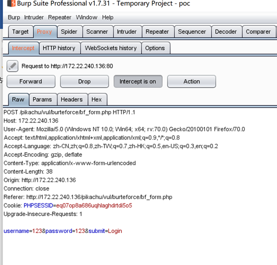 这里需要用到BurpSuite进行抓包,我把代理配置好了之后始终抓不到本地pikachu的包,但是却可以抓到其他的包。