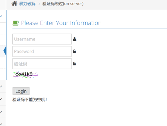 通过发回的响应“验证码不能为空哦!”判断出,后台对验证码进行了校验,我们不能使用之前的方进行破解,但是如果验证码不具备时效性,及同一个正确的验证码可以反复使用的话,我们可以通过不改变验证码的变量进行暴力破解。