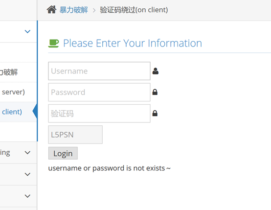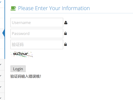 显示验证码输入错误,那我们尝试随意输入账户密码、正确输入验证码试试。