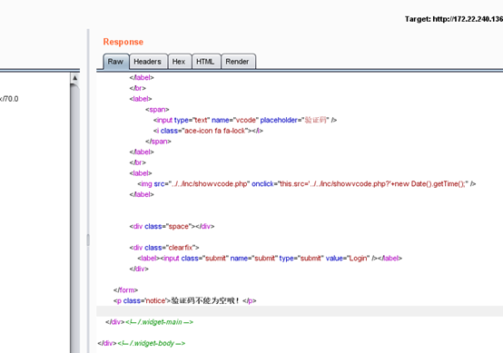 返回到Burp Suite拦截到POST请求,同之前的方法发送到Repeater模块下。选择随意填写一个验证码或不填,来判断后台是否对验证码进行校验。