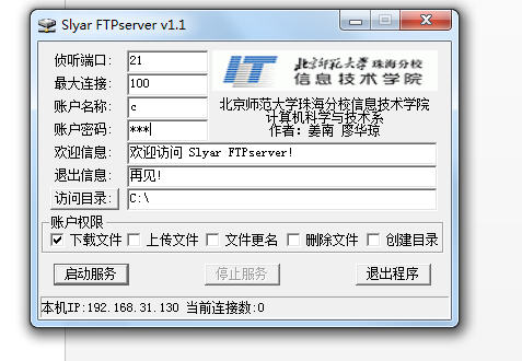 两个同学配合完成,A同学搭建FTP服务器,并新建用户,并设置登陆密码