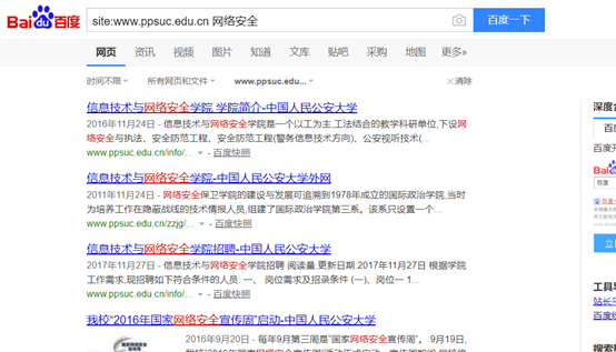 用百度或google搜索www.ppsuc.edu.cn中所有包含“网络安全”的网页。(附截图)