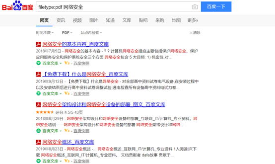 用百度或google搜索所有包含“网络安全”的pdf文档(附截图)