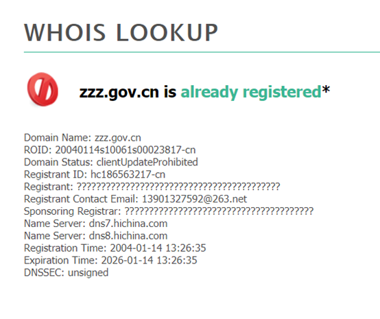 获取www.zzz.gov.cn域名注册时,注册人的邮箱是(附截图)