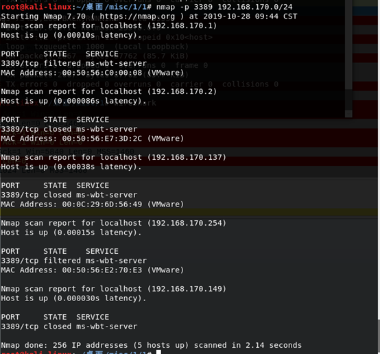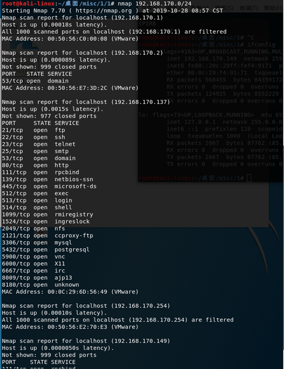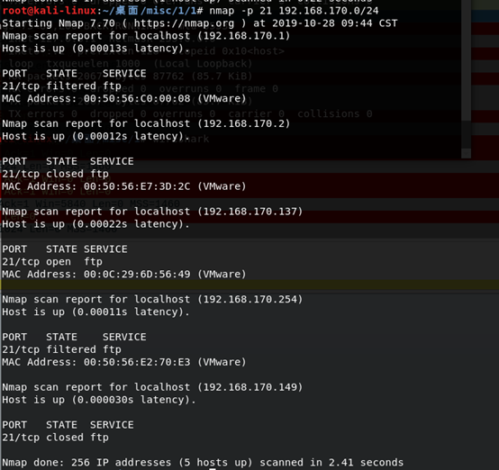 在实验楼上网的局域网内,请扫描出来,哪些机器开启了ftp服务,哪些机器开启了远程桌面连接服务,并附截图证明。