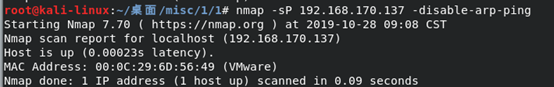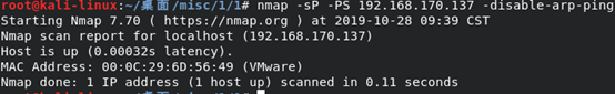 可以看到识别为内网,没有使用icmp协议扫描 用的arp