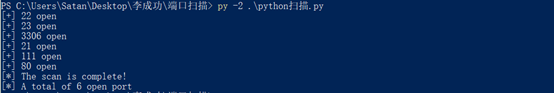 ports = [20, 21, 22, 23, 80, 111, 3306] #定义要扫描的端口,也可以在for中使用range进行定义,看个人需求,例如 for p in range(1,1024):