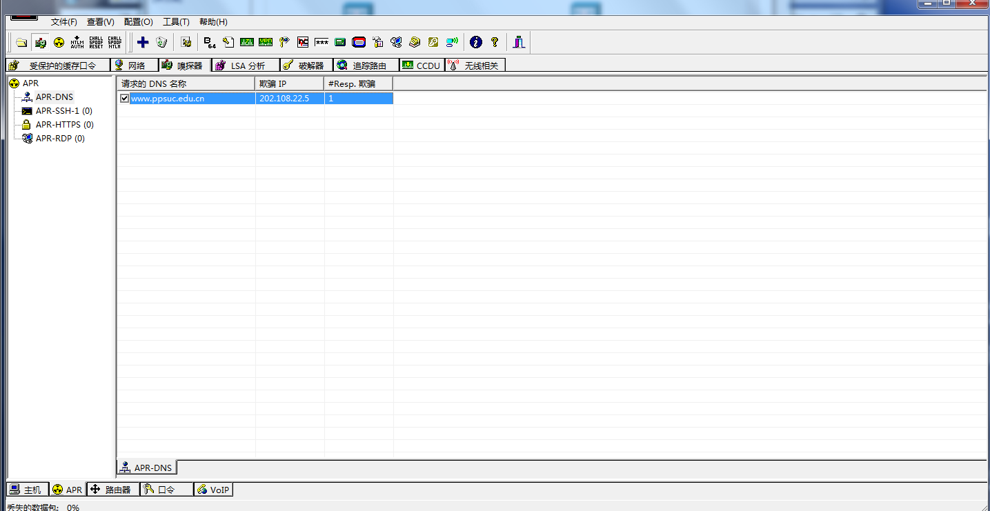 3.B同学扮演攻击者,设计攻击方法,使用CAIN,通过DNS欺骗的方式,让A同学访问www.ppsuc.edu.cn网址的时候,访问到另外一台机器上的伪造网站