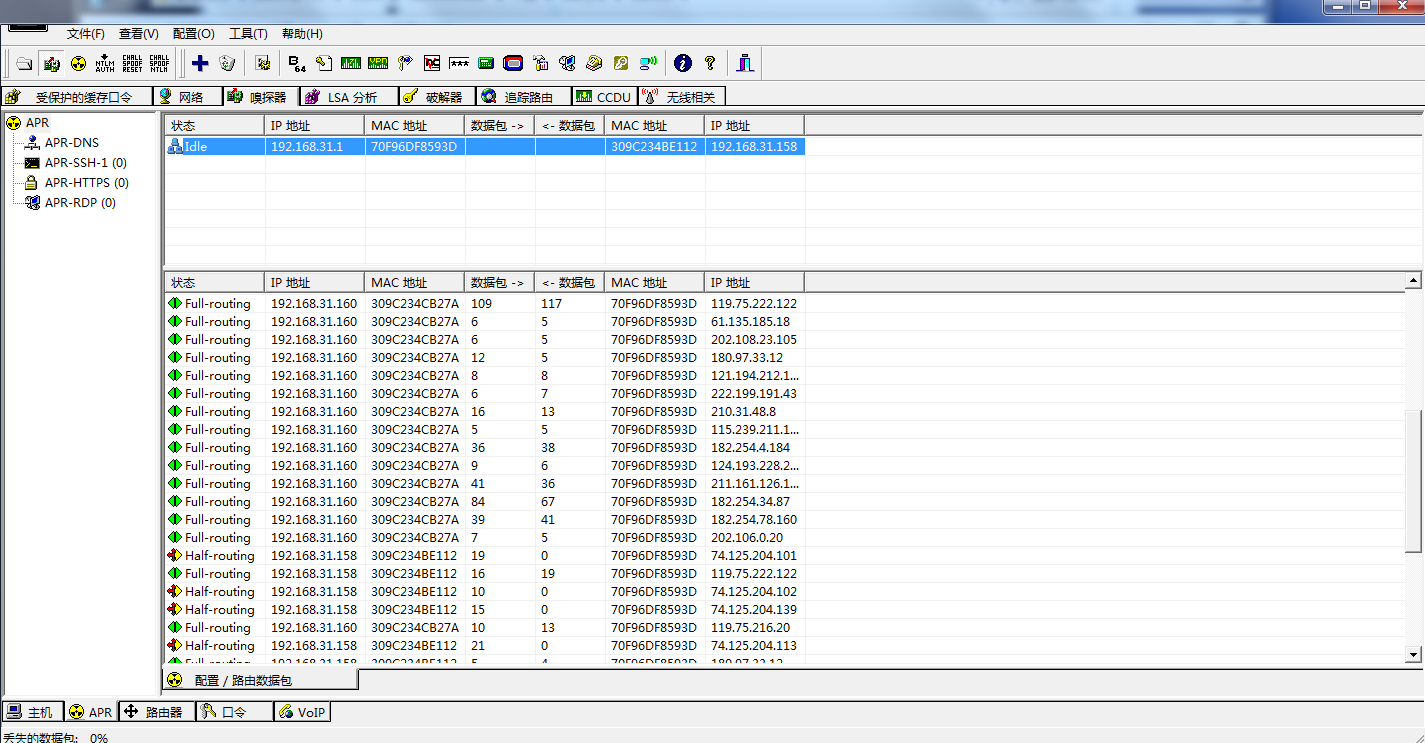 点击工具栏第三个图标(start ARP)就可以ARP欺骗了