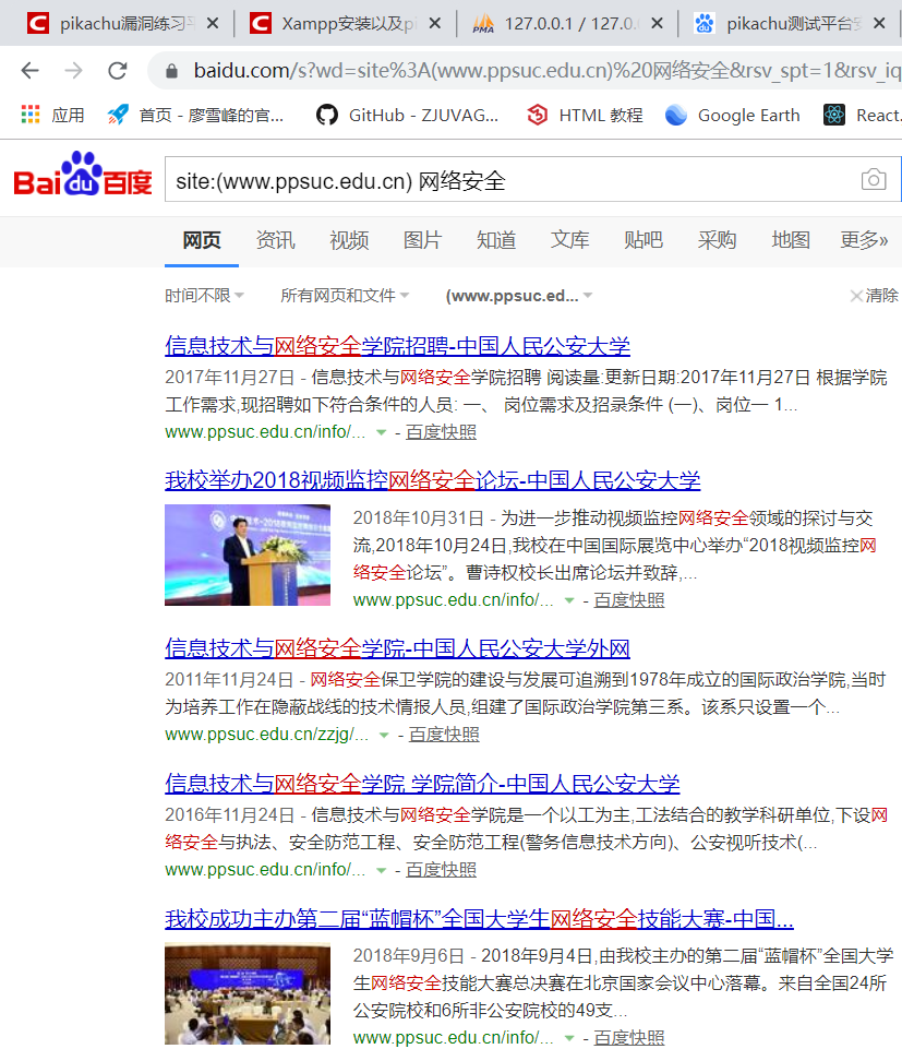 用百度或google搜索www.ppsuc.edu.cn中所有包含“网络安全”的网页。(附截图)