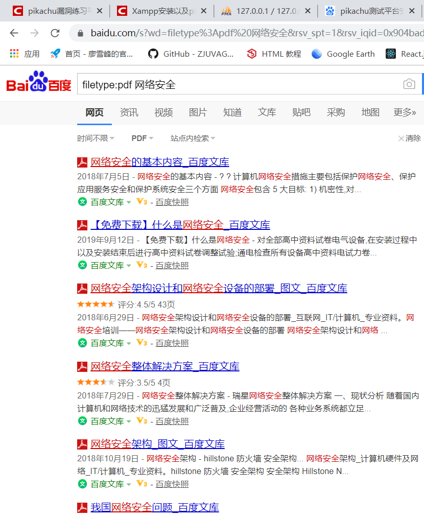 用百度或google搜索所有包含“网络安全”的pdf文档(附截图)